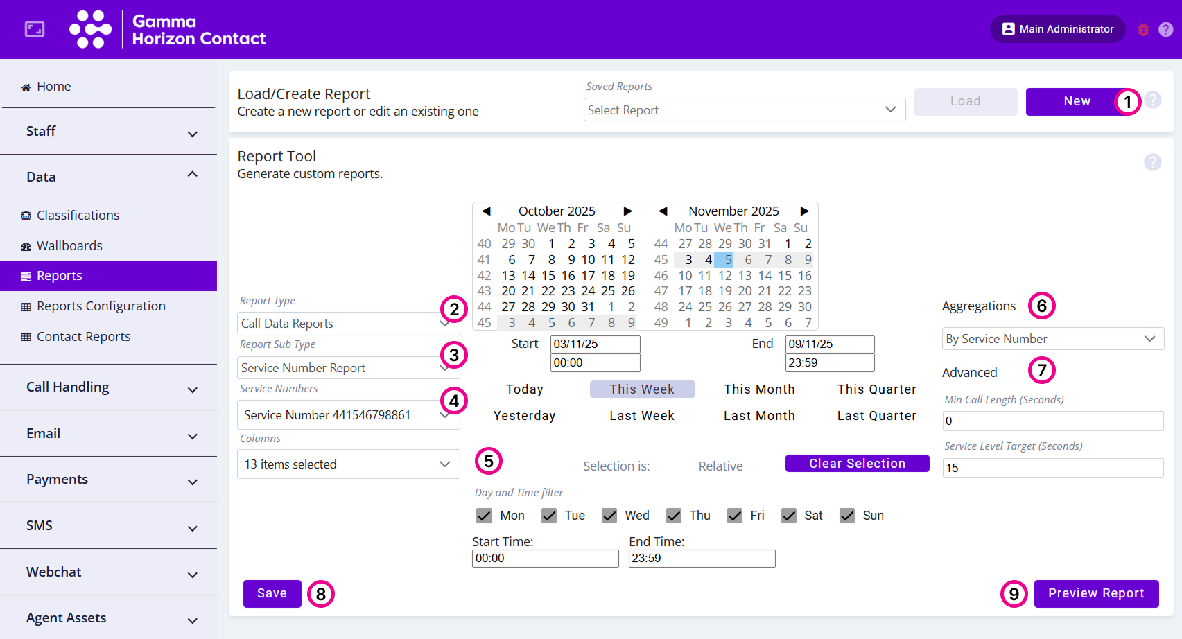 Existing Data Reports can also be loaded and edited as required, so you could generate the same report but with different dates, without having to input all the other settings again. See Edit Data Reports.